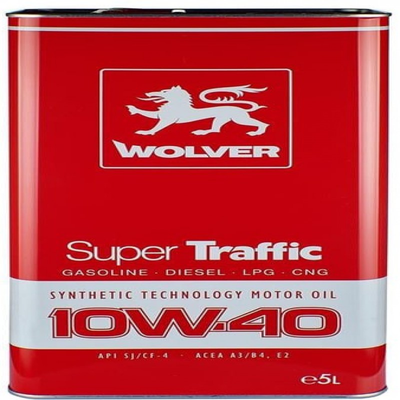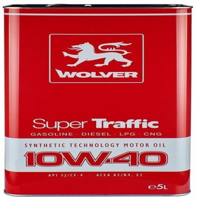 Wolver Super Traffic SAE 10W-40 — всесезонна напівсинтетична моторна олива з універсальними характеристиками. Призначена для бензинових і дизельних двигунів, а також двигунів, що працюють на природному газі (LPG — суміш пропан-бутан або CNG — метан) як атмосферних, так і обладнаних турбонаддувом легкових автомобілів, мікроавтобусів і легких вантажівок. Рекомендована для цілорічного використання в різних режимах експлуатації: міської, заміський цикл, режимах старт-стоп. Ідеально підходить для змішаних автопарків.